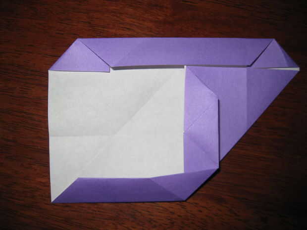 Retire el borde vertical interior de la aleta que dobla en el paso 6, mientras que al mismo tiempo, doblar el borde inferior.