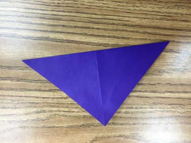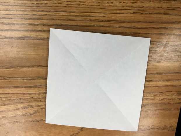 Comenzar con la pieza de origami papel color boca abajo. Doblar y desdoblar el papel diagonalmente por la mitad en ambas direcciones, a forma pliegues en forma de una X.