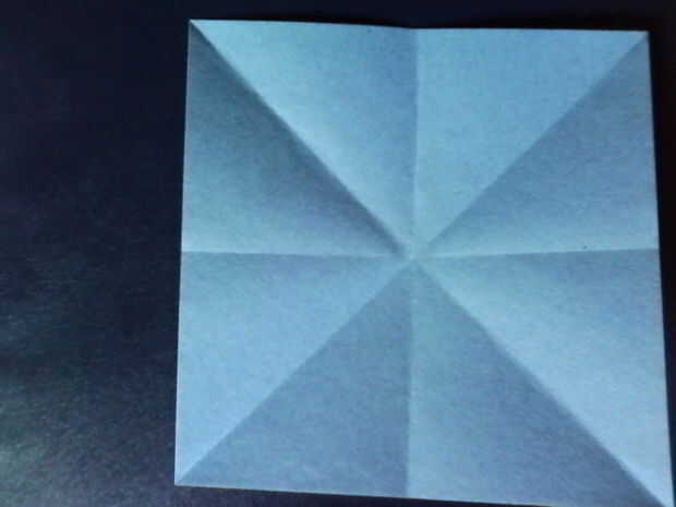 5:Now hacer mismo un valle doblar a lo largo de la otra diagonal, pliegue bien y desdoblar papel.