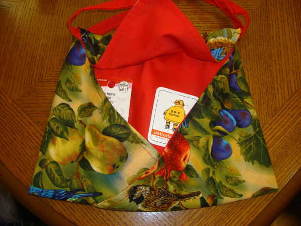 recientemente he estado experimentando con el origami utilizando los métodos de la plegables para hacer artículos útiles.  Aquí es un bolso adorable origami que hice de un tutorial en línea.  Es rápido, fácil y barato.  Usted puede hacer esto usando bufandas o servilletas cosidas.  Este bolso sería tan elegante de denim.  Va a hacer más de estas alterando el patrón para hacerlo un poco más único y funcional.