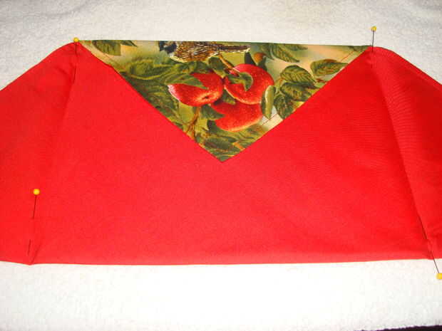 Puntada de un extremo de la parte superior plana, recta hacia abajo para el doblez de la parte inferior del triángulo, costura hacia atrás los extremos para garantizar.