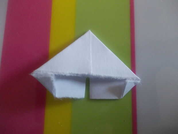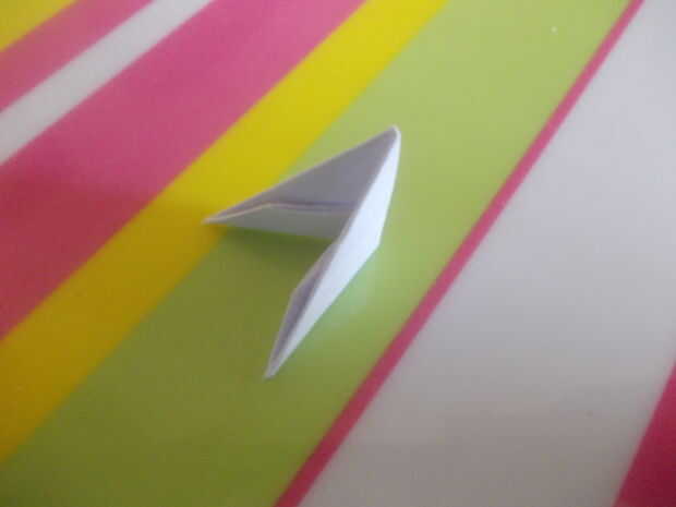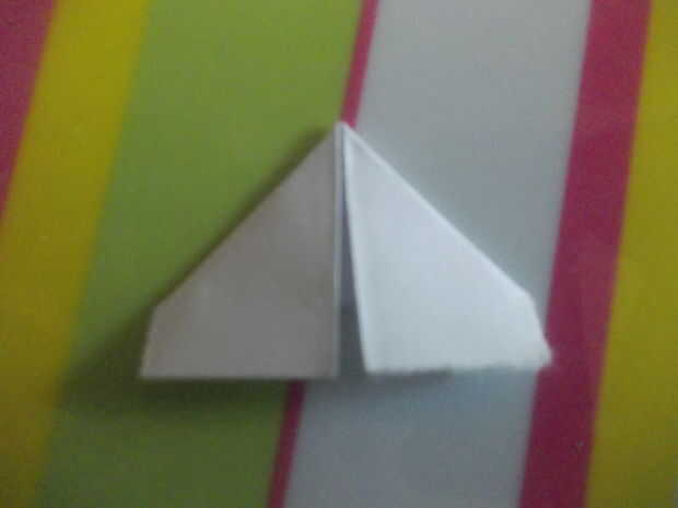 A continuación, doble cada lado para el pliegue del centro. Esto debe crear una forma boat-ish. Asegúrese de que usted mira las fotos.