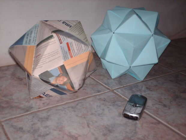 hacer un octaedro estrellado, un icosaedro estrellado o un simple cubo utilizando papel único.