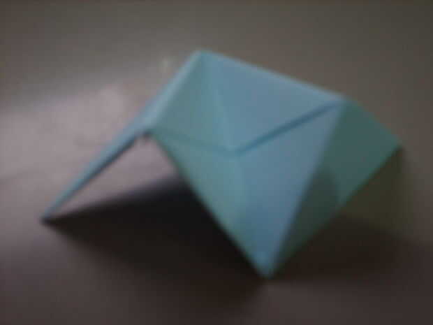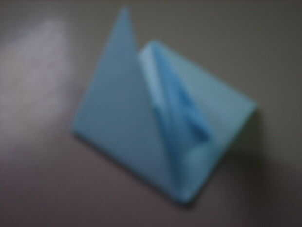 Doblar por la mitad y luego ábrelo otra vez. Doblar ambos extremos del papel para llegar a la mitad de la Plaza. Gire el papel y doblar los lados como se ve en la foto. Nota: se puede doblar el lado izquierdo o lado derecho abajo, pero tienes que hacer todos los módulos de la misma, o vas a tener problemas de configuración. OK, luego doblar los bordes restantes hacia arriba y hacia abajo, para obtener un cuadrado doblado otra vez, con los bordes que salen. Vuelta otra vez para doblar diagonalmente y su módulo está listo.