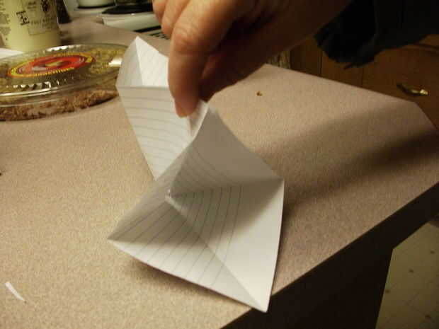 ahora que tienes una plaza obtiene la esquina inferior izquierda y doblar a la esquina superior derecha. Ahora tienes ahora necesita doblar el esquina derecha a la esquina superior izquierda del bottem. Entonces tienes las dos esquinas de bottem a las dos esquinas superiores. Luego doblar la parte superior derecha y bottem derecho a la parte superior izquierda y el bottem. Ahora se despliegan los dobleces y luego agarrar que las esquinas izquierdas derecha y bottem superiores reúnen y doblez en el cuadrado derecho del bottem luego doblan la parte superior hacia abajo.