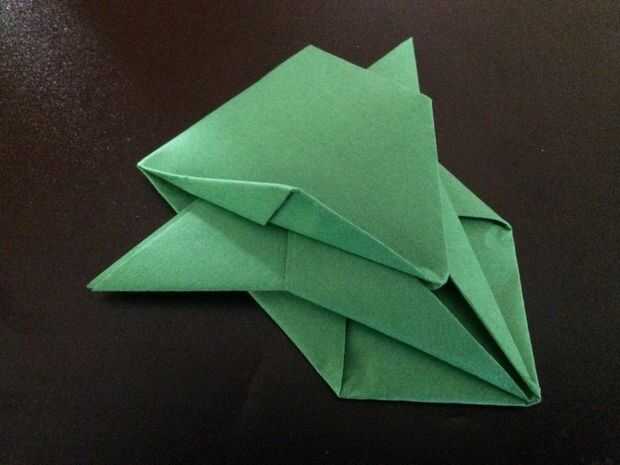 Paso 14: Tomamos la esquina del triangulo de arriba y la doblamos al centro del triangulo