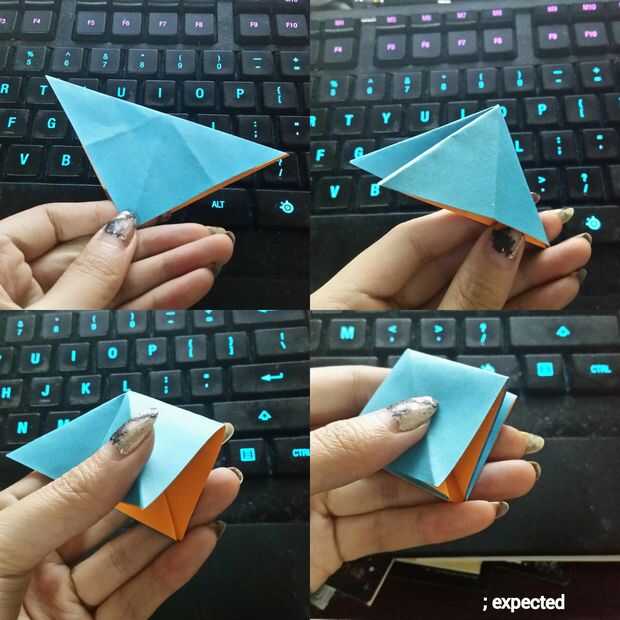 1. Doblar el cuadrado diagonalmente y luego diagonal otra vez