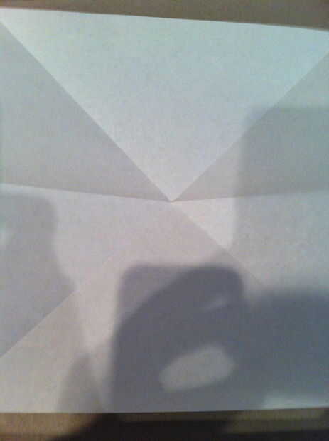 Ahora, vuelta el papel. Bajar el borde superior del papel hasta el borde inferior, y luego doblar. Debe tener una línea pasando por el tirón de la X. el papel a como estaba antes.