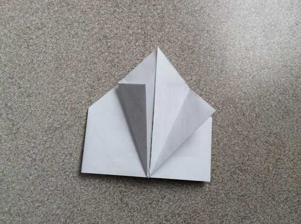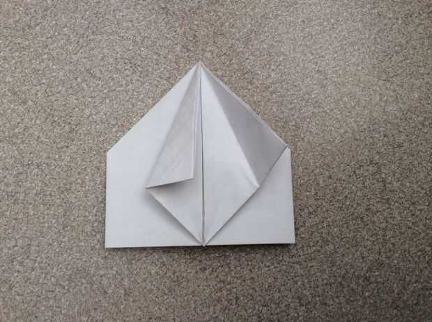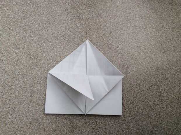 Después, plegar las 2 aletas en la parte inferior de la Plaza y, a continuación, doble hacia arriba, haciendo un pliegue.