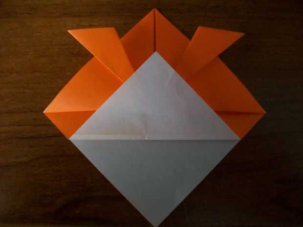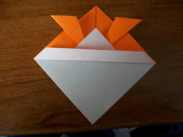 Luego vally doblar las dos esquinas que acaba doblado en la parte inferior (foto 4). Gire 180 grados.