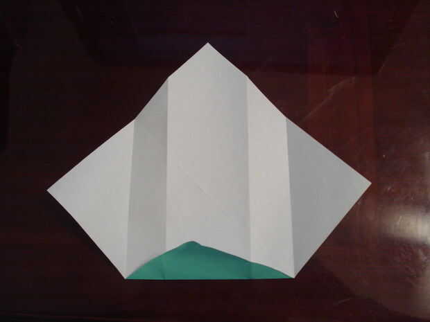 Doble una esquina hacia el centro. Si usted está teniendo problemas haciendo estos pliegues coincidir, doblar los lados del papel, haciendo una "X" en el centro.