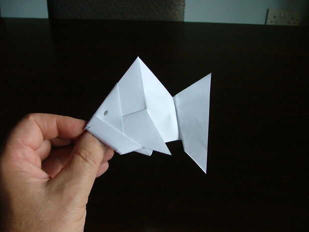 tiempo número tres viene mi origami pez ángel. Esta vez he utilizado flash en una habitación brillantemente iluminada, y creo que mejora la calidad de imagen algo. Prometo que esta va a ser más fácil de entender si usted tuvo problemas con mis dos úl
