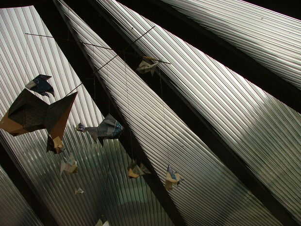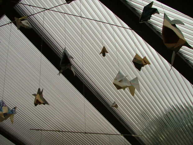 Varios peces de diferentes tamaños se pueden organizar para equilibrar y hacer un interesante efecto visual ya que swing y nadan en la brisa.