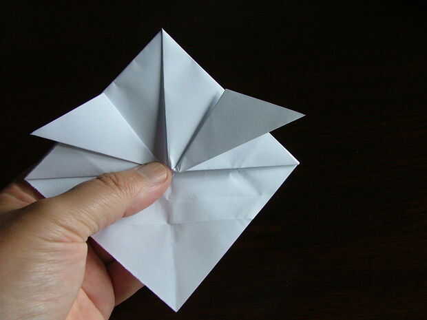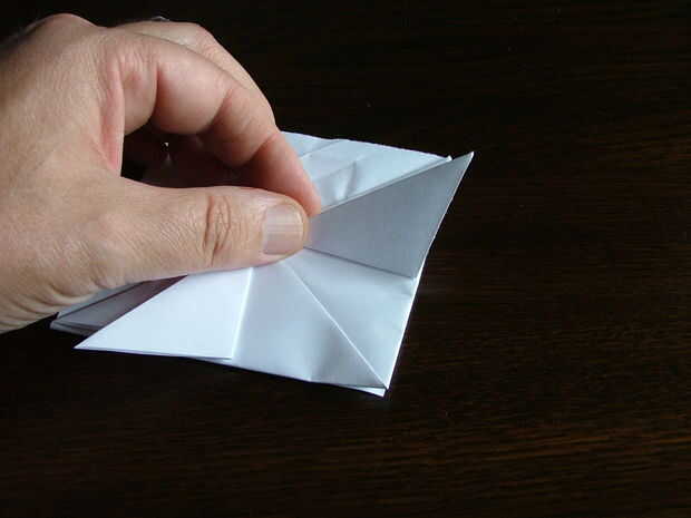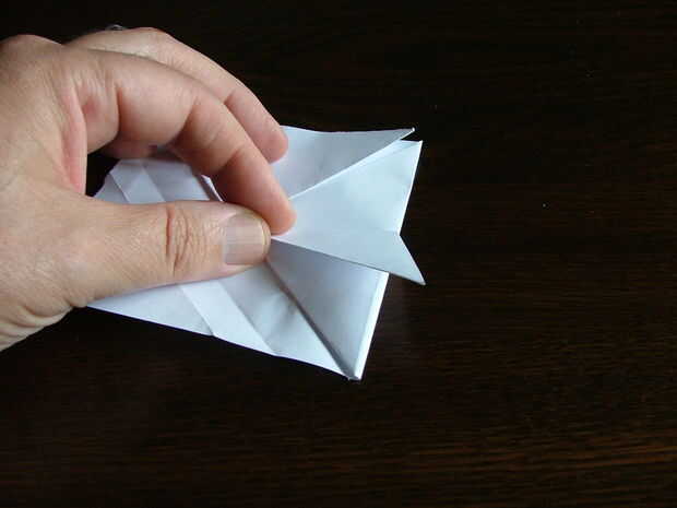Doble hacia abajo la solapa superior derecha a un lado - esto hace que la aleta del pez.