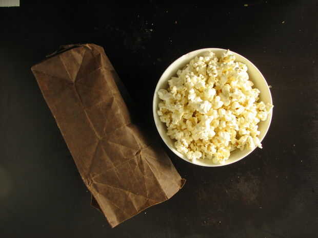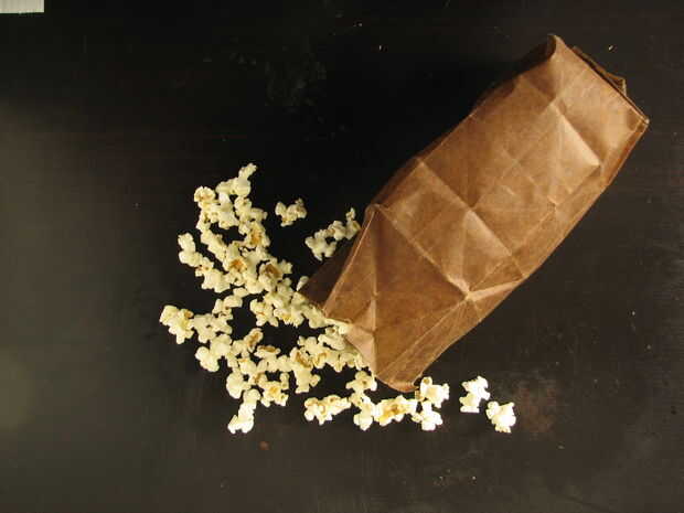 Bolsa endecha plana, con los extremos doblados hacia arriba. Microondas en alto por 2 minutos, hasta que queden 5 segundos entre pops. Ahora la bolsa habrá inflado y lleno de deliciosas palomitas de maíz! Espolvorear con las especias deseadas y agite la bolsa cerrada para distribuir.