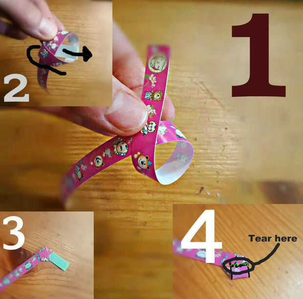 1. Crear un bucle en un extremo de la tira, con el cruce hacia arriba.
