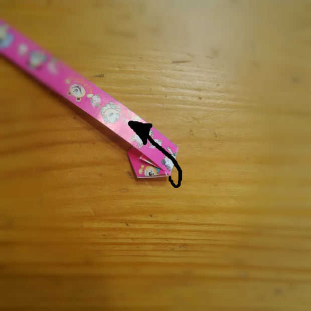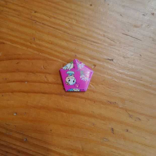 Hacer estas estrellas suerte origami pequeño.Paso 1: 1Empiece con una tira de papel o cinta.Paso 2:2Un nudo en la parte superior como se muestra.Paso 3:3Aplane el nudo.Paso 4:4 Meta el extremo suelto en el bolsillo del nudo.Paso 5:5Doblar la tira de