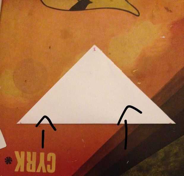 Paso 2: Doblar la parte inferior hacia arriba para que se toquen el número 1 y 3 y se crea un triángulo.