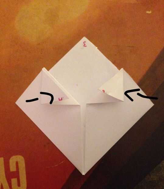 Paso 5: Doblar los bordes puntiagudos de su interior de papel para que se reúnan en el centro. Estos serán los ojos de las ranas!