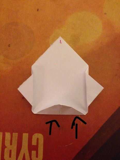 Paso 8: Pliegue la aleta inferior de papel hacia arriba para dar su apoyo de rana.