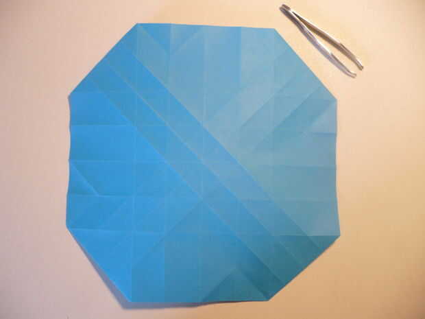 Una vez desplegado, el papel debe tener los pliegues que se muestra en la foto 4.