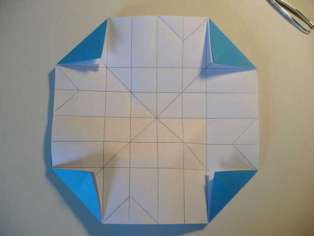 Doblar las cuatro esquinas de los pliegues en el exteriores en el primer paso (Foto 2)