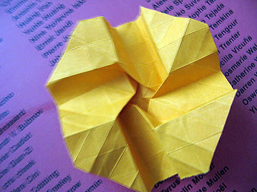 En primer lugar, la vuelta del origami para que no puede ver la plaza en el centro.