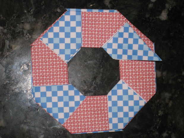 Este un paso bastante fácil, pero también un paso crucial. Qué es diapositiva a trozos de papel juntos, el extremo cerrado se inserta en el extremo abierto. A continuación doblar las lengüetas del papel exterior en el interior papel. Continúe este paso hasta que el octágono completo!