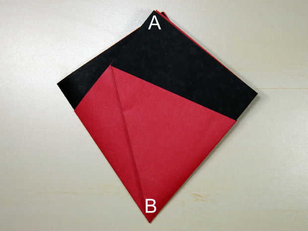 Ahora toma la mitad del papel en el A y doble a B. Es importante que se doblan ambas piezas en este punto.