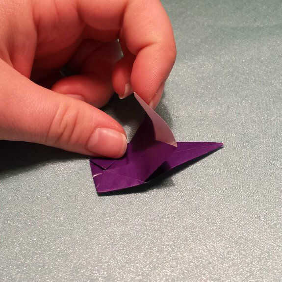 necesita una hoja de papel cuadradoPaso 1: doble el papel diagonalyPaso 2: plegar parcialmente uno de los extremosPaso 3: doble por la mitadPaso 4: plegar la parte inferiorPaso 5: doble de calabazaPaso 6: doble y doblarPaso 7: doblePaso 8: vuelva alP