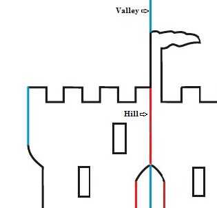 Dobla todas las líneas rojas en un pliegue de la colina.