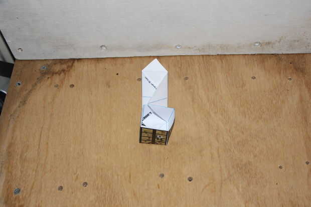 Ahora usted forma la parte final. Como antes, forman dos aletas empujando los pliegues de la "naranja" y luego doblar la derecha sobre las aletas y metiendo la esquina en su anterior posición.