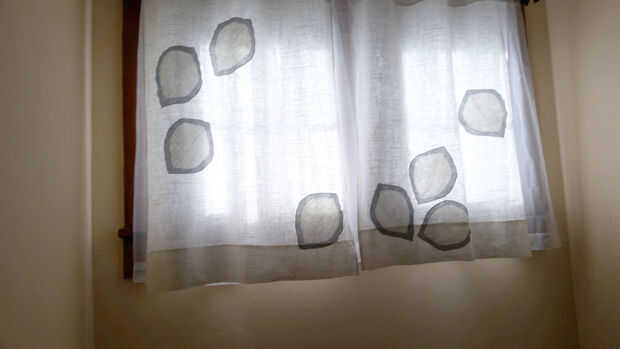 Estas hojas fueron recortes de restos de otro conjunto de cortinas. Utilizando y añadiendo algo de creatividad, fui capaz de hacer un juego de emparejar cortinas para mi dormitorio que se cernía sobre mis ventanas de dormer sobre mi Tumbona de chase.