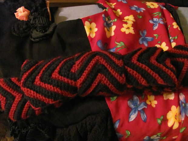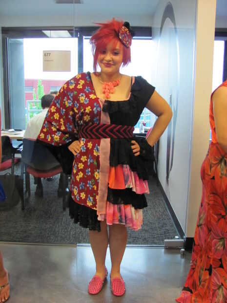 este diseño es de mi creación original, que hice de $75 valor de ropa de buena voluntad, incluyendo el casco del modelo. También de ganchillo la hoja Obi, así como el collar de la flor. El tema fue "Around the World" y mi inspiración fue estilos folklóricos tradicionales japonés mezclados estilos de calle de Harajuku. Esta prenda fue completamente ejecutada dentro de un período de cinco semanas de tiempo y fue parte la buena voluntad brillo Gala del concurso de diseño en el Instituto de arte de Seattle en mayo de 2012. No coloque, pero todavía estoy super orgulloso de todo el trabajo que hice en él y las habilidades que he adquirido trabajando en este diseño.
