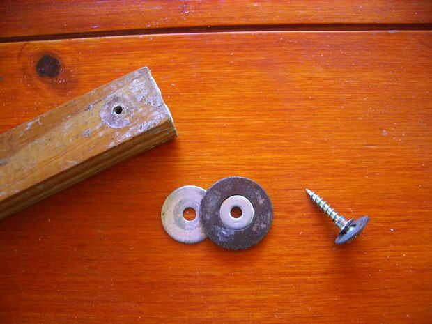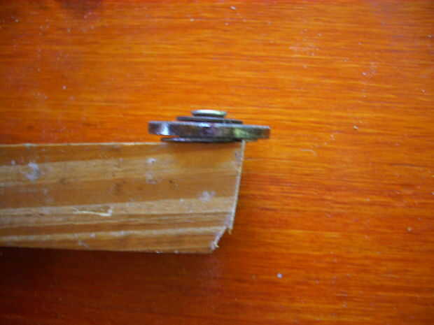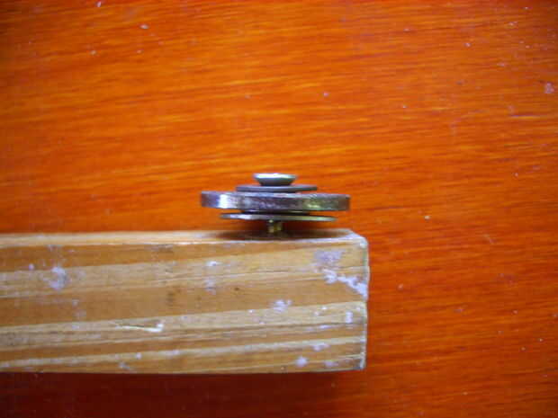 El primer paso es conseguir unas arandelas para sujetar la pieza con un tornillo a un mango de madera, para que rotarían. .