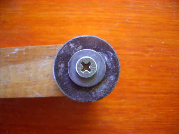Lo primero fue conseguir algunas arandelas que me permitieran asegurar la pieza mediante tornillo de las Naciones Unidas a un mango de madera, de manera pudiera girar.