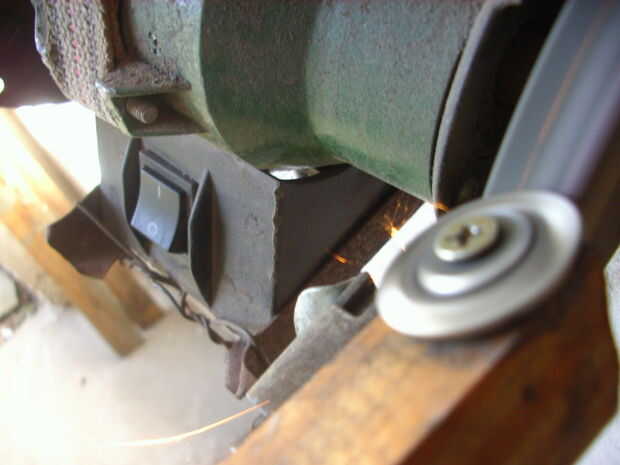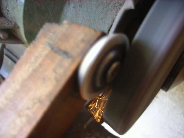 Afilé el borde de la presencias de acero, en Chapulín, para lo cual la apoyé inclinada sobre la inapropiada de pared, logrando de esta manera girara mientras se afilaba. Así logré un filo aceptablemente parejo.