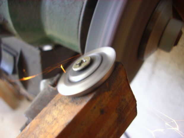 Afilé el borde de la arandela de acero, hacer un chaflán, que apoyó inclinada del molino de pared, lo que le permite girar mientras está afilando. Esto me dio una ventaja buena, suave, fuerte.