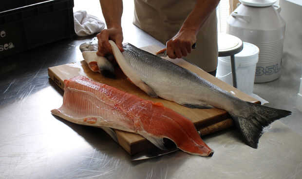 Es fácil preparar las pieles de salmón. Lo más importante que se debe hacer con cualquier proyecto de revestimiento es evitar que las bacterias malas colonizando la piel. Comenzar con los pescados más frescos que se puede conseguir-capturado ese mismo día o el día antes. Este salmón fue traído a nosotros por Martin Reed de pescado sostenible empresa me encanta mar azuly fue utilizado en Instructable Maria Finn llamada rompiendo hacia abajo un salmón entero.