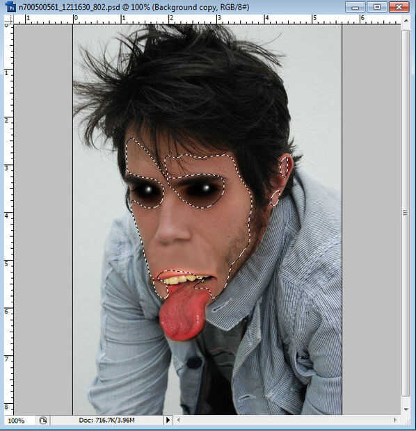 4) ahora van a las Naciones Unidas-ocultar la capa de textura pegajosa y selecciónelo. Haciendo clic en ctrl-shift-i, vamos a la inversa nuestra selección. Ahora presionamos delete y debemos terminar con una textura ajustada a nuestro face(7). Ahora vamos a ir a la capa de mezcla de efectos de esa capa y seleccione luz fuerte como un mode(8) mezcla. Ahora vamos a ctrl y haga clic en la capa de la cara y la textura por lo tanto se seleccionan. Entonces vamos hacer clic en ctrl-E para combinar estas capas.