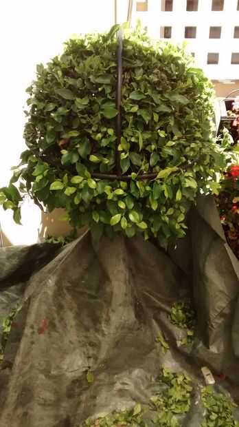 1 Empuje el marco que forma sobre la parte superior del arbusto.