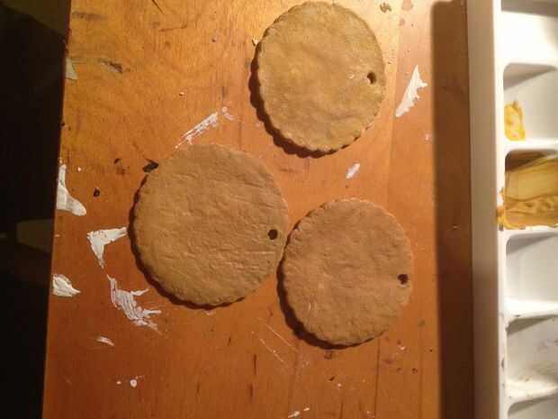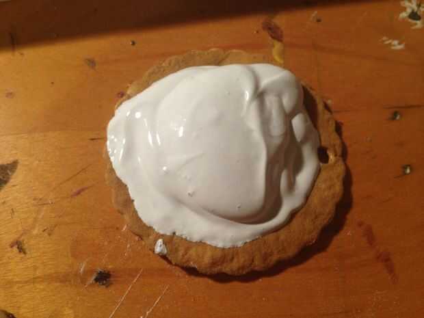 Poner la articulación compuesta sobre uno de sus cookies y dejarlo reposar unos cinco minutos. No desea agregar la otra cookie demasiado pronto o de lo contrario se extenderá hacia fuera de las junturas.