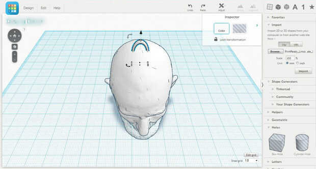 Utilice el menú "import" en la parte superior derecha de Tinkercad importar el. STL que acaba de guardar. Ahora usted puede hacer algunas ediciones simples. Incluso podría ser creativos y agregar un tophat. En este caso no porque tenía un volumen de fabricación limitado a 3 "x 3" x 3 "y la cabeza habría conseguido pequeña con un sombrero alto en la parte superior.