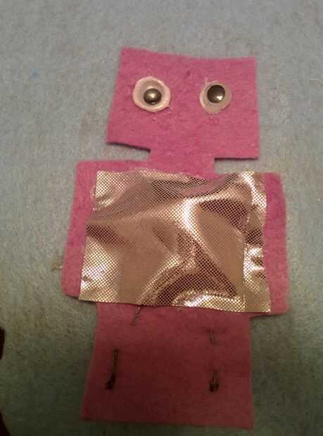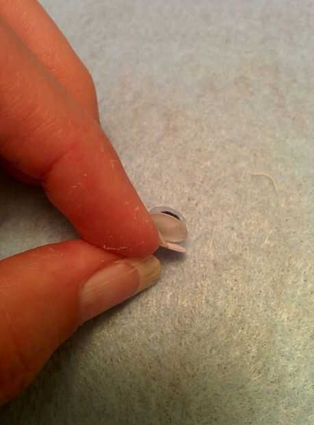 Una vez que el panel de tu torso es pegado y seguro, pegar los ojos. Si los ojos saltones son autas-adhesivas, como todos los míos son, necesita utilizar el pegamento de la tela, sin embargo, asegúrese de que usted pela el protector forro primero.