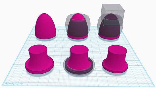 Empecé con una forma de huevo que corté por la mitad. Luego utilicé una serie de formas para cortar el medio huevo en forma de sombrero. Luego añadí un fondo curvado y el anillo a la forma de sombrero.