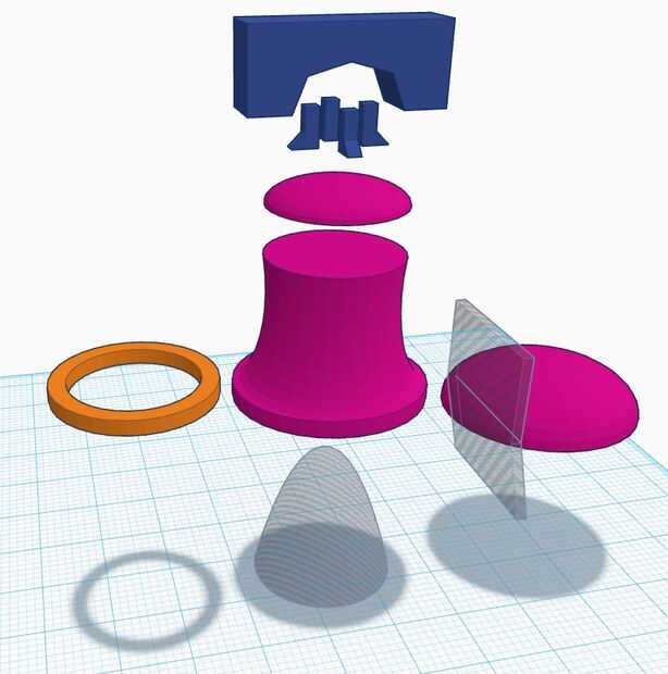 Aquí es otro punto de vista de todas las piezas de la campana.