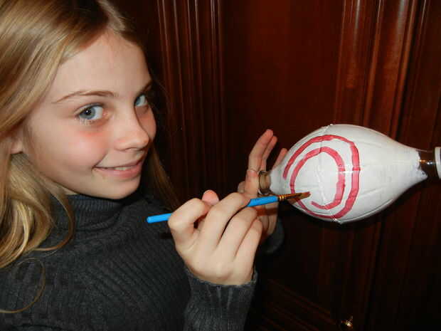La parte de pintura es muy simple también. Primero pinta todo fuera blanco. (espere que se seque antes de hacer la siguiente parte). A continuación, tomar un pincel más fino y un remolino de la pintura en un lado. Hacen lo mismo en el otro lado. Después de se seque que desea tomar su pintura sparkley y cubrir todo con él.