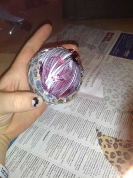 Bien ahora tienes tus materiales recogidos es el momento de conseguir este partido en la carretera. Primero retire las tapas de los ornamentos y despedir al lado. A continuación tome su cepillo y empezar a pintar el mod podge en el orbe, empecé desde abajo. Corte de piezas de su papel y solo ellos bofetada sobre el mod podge entonces tome su cepillo y algunos encima del borrón de transferencia y tratar de cepillar sus bordes hacia abajo (va a ser desigual en el lugar pero me gusta que se le da una textura fresca). Continúe esto hasta que su ornamento es todo cubierto :)