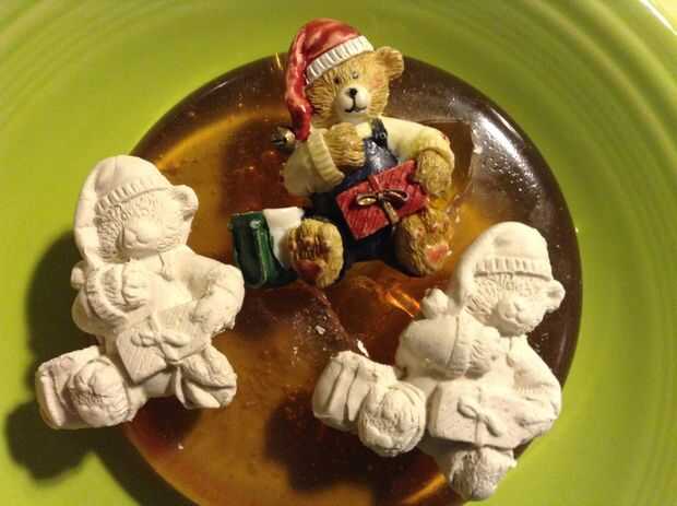 Aquí estamos utilizando un compuesto de modelado seco de aire que es ligero y rápido secado. El compuesto de modelar se presiona en el molde llenando todas las áreas. La técnica que se muestra a continuación utiliza una sola bola que es empujada en el molde, pero puede ser más fácil de usar trozos pequeños en todas las áreas que necesitan atención especial para ser llenado como las orejas o los brazos del oso.