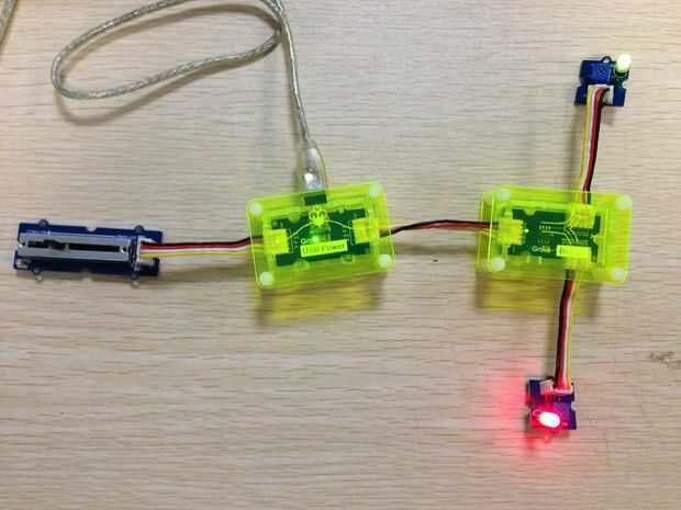 He probado una vez como pic 1. Cuando me deslicé la diapositiva de izquierda a derecha, dos LEDs encendieron para arriba poco a poco. Perfecto, justo lo que esperaba.